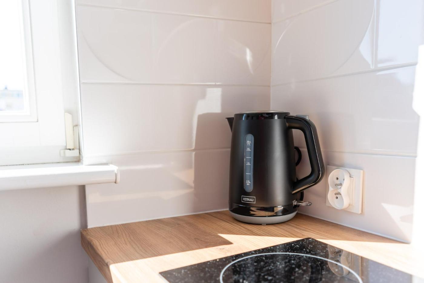 Apartament z 1 sypialnią. This apartment includes 1 living room, 1 separate bedroom and 1 bathroom with a shower and free toiletries. Guests can make meals in the kitchen that has a stovetop, a refrigerator and kitchenware. The apartment offers a tea and coffee maker, a seating area, a dining area, a flat-screen TV with streaming services, as well as city views. The unit has 2 beds. Apartament - 3 osobowy. Powierzchnia pokoju ok.: 20 mkw.