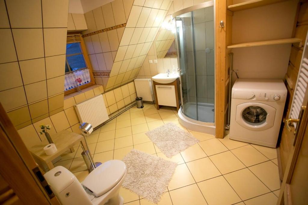 Apartament z 1 sypialnią. Guests will have a special experience as the apartment offers a fireplace. Featuring a private entrance, this spacious apartment also comprises 1 living room, 1 separate bedroom and 1 bathroom with a shower. The apartments kitchen is available for cooking and storing food. The apartment provides a washing machine, a sofa, parquet floors, a flat-screen TV, as well as mountain views. The unit offers 5 beds. Apartament - 6 osobowy. Powierzchnia pokoju ok.: 100 mkw. ;