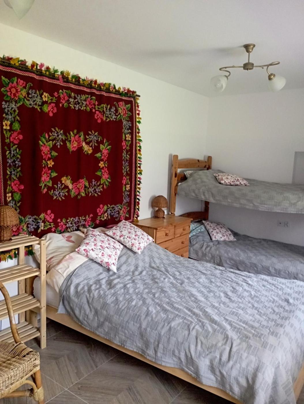 Domek. This chalets standout feature is the fireplace. Boasting a private entrance, this chalet includes 1 living room, 1 separate bedroom and 2 bathrooms with a shower and a hairdryer. Guests will find a stovetop, a refrigerator, kitchenware and a microwave in the kitchenette. The chalet also features a barbecue. Featuring a terrace with garden views, this chalet also offers a tea and coffee maker and a flat-screen TV. The unit has 2 beds. Domek - 4 osobowy. Powierzchnia pokoju ok.: 60 mkw.